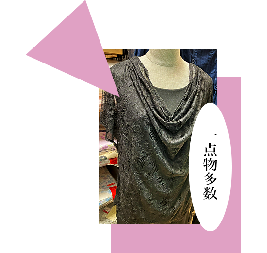 同じものは二つとない一点ものを多彩にご用意。きっと、あなただけの特別な一着がここで見つかります。