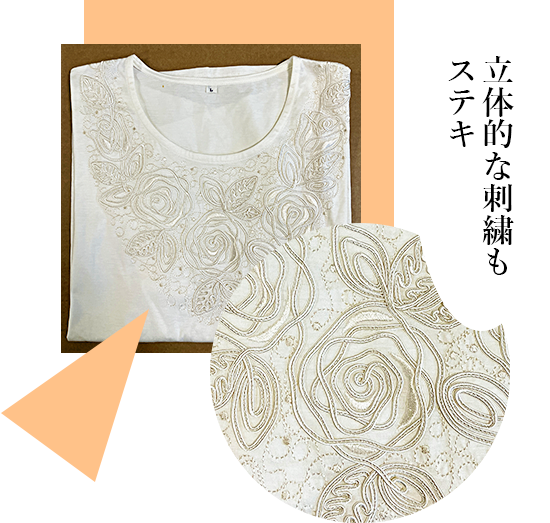 繊細で立体的な刺繍がアクセントになり、大人の落ち着きと華やぎを表現。日常から特別な日まで幅広く映える上品なコーデです。