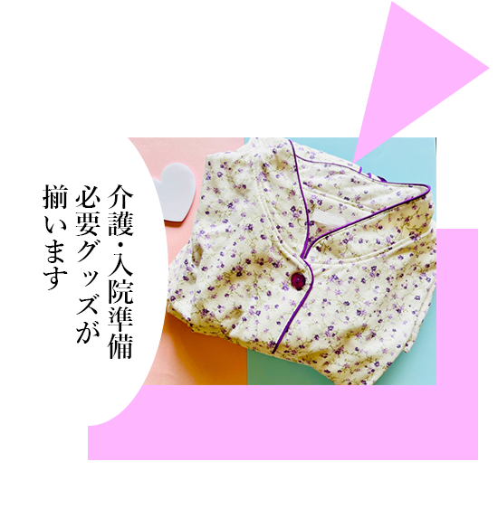 介護や入院の準備に欠かせない服や小物を幅広く取り揃えています。機能性と着心地を大切にしながら、毎日の安心をサポートするアイテムが揃います。