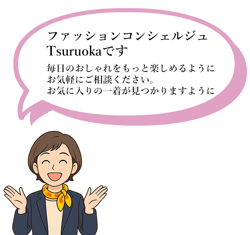 さりげなく華やぎ、大人の魅力を自然に引き立てる。普段のお出かけにも映える、上品で心地よい、やさしいおめかしスタイルです。